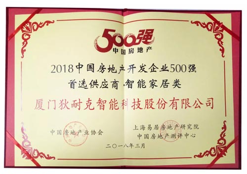 “中国房地产开发企业500强首选供应商·智能家居类”